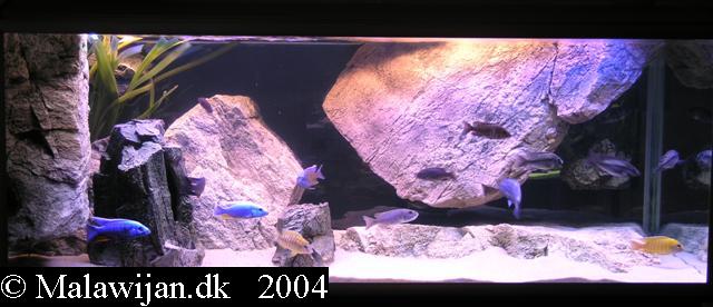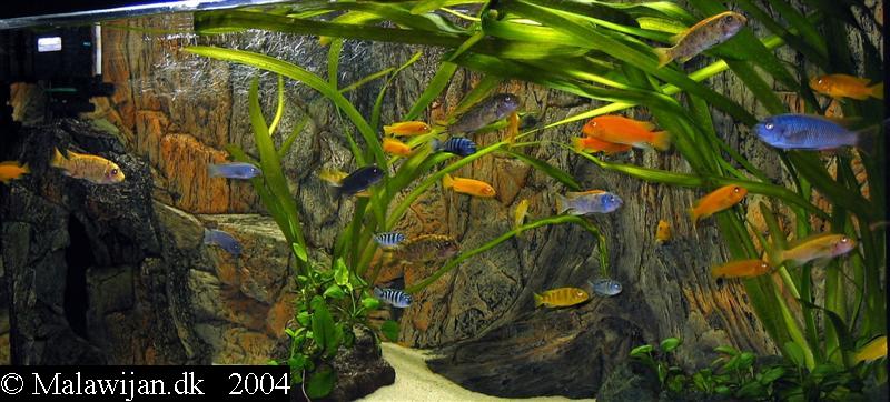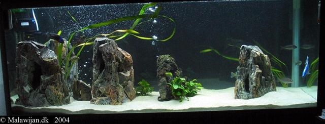 Udgangspunktet for et Malawiakvarium er kun fint sand 0,5-1,2 mm, kalksten og ingen planter eller trærødder, men Malawisøen er en meget stor sø, næsten på størrelse med Danmark og der findes områder med planter, sump og træ, det er ikke normal der mine akvariefisk stammer fra, men de findes.