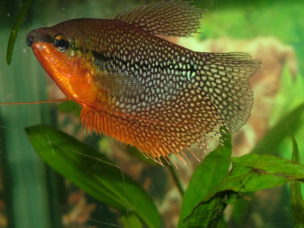 Perleguramien, Trichogaster leeri, er nok den smukkeste gurami eller labyrint fisk, som kan købes. Navnet Perlegurami kommer af, at fisken har et utal af pletter, der ligner perler over hele kroppen. Farven er mere mod det blålige.