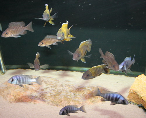 Herunder lidt Malawi mbuna fra Flyvefisken. Da Bak69 skal passe det og da Malawi er gode begynderfisk, så valgte vi at lave det til et 250L malawiakvarium.