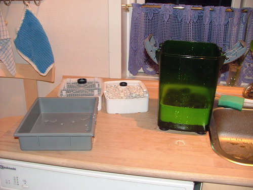 Da vi kom hjem skulle akvariet op og pumpen skulle tilsluttes. Vi havde ingen erfaring med Jebo spandpumper. Men vi var begge enige i at den var meget nem at gå til og den kører bare :-) Nu har den kørt i ca. 2 uger og alt forløber tilfredsstillende!