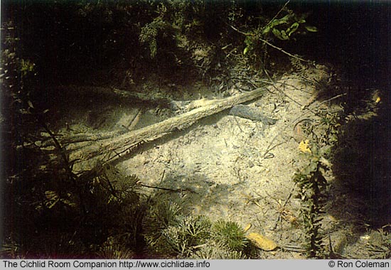 Interessant nok er der nogle cichlider, som ikke fjerner vegetation. For eksempel Archocentrus septemfasciatus i Rio Puerto Viejo i Costa Rica, hvor jeg har observeret dem, lader ikke til at rydde området omkring reden. Faktisk foretrækker denne fisk at lave rede under træers filtrede rødder og blandt nedfaldne blade. Disse er de mindste cichlider i floden, og det er mit gæt, at det forsøger at tiltrække reden så lidt opmærksomhed som muligt. Et ryddet område ville være afslørende for et potentielt rovdyr, og Archocentrus septemfasciatus forældrene ville nemt blive løbet over ende.