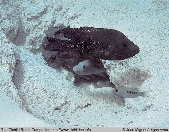 Cichliderne yngler langs med bredderne, under overhængende vegetation. Den sandede bund er dækket af akvatiske planter over det meste af legeområdet. Cichlidernes første job er, at fjerne nærtstående planter (i høj grad ligesom de gør i et akvarium). Formålet med at fjerne planterne er ikke bare, at irritere akvaristen: Det er at skabe en vital, fri zone omkring reden. Forældrene bliver i denne frie zone og holder øje med omgivelserne for potentielle angribere.