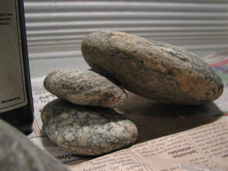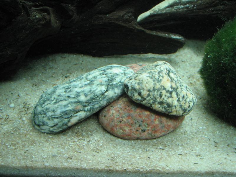 Stenene må man selv bestemme hvordan ser ud, man skal dog tænke lidt på hvad for nogle fisk man har i akvariet, så de f.eks. ikke skærer sig på skarpe sten eller lignende.