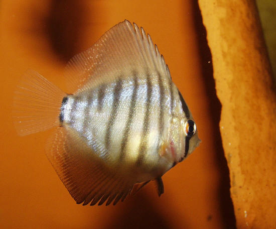 Men ofte ser man desværre discus, der bærer tydeligt præg af stress. En væsentlig indikator for dette er, når de lodrette striber bliver mere eller mindre permanent markante på individet og rygfinnerne eventuelt samtidig "klapper sammen". Og jo mørkere striber, desto tydeligere stress-signal.