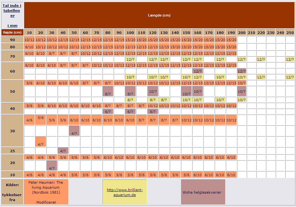 Hvis du vælger at bygge dit akvarium selv, bruger du tykkelserne her på eget ansvar!