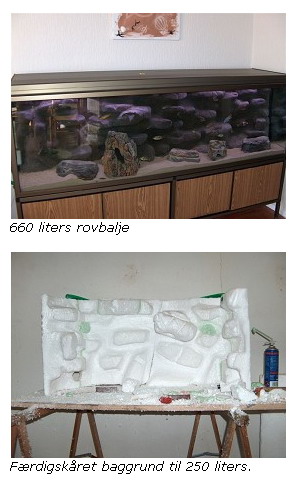Mit mål er at lave en klippe-formation med så mange huler og gemmesteder som muligt til mine malawier. Samtidig vil jeg gerne opnå en god dybdevirkning i mit akvarium. Dette kræver en tyk flamingoplade! I mit 660L har jeg brugt en 22 cm. tyk plade og i 250'erne en 15 cm. plade.
