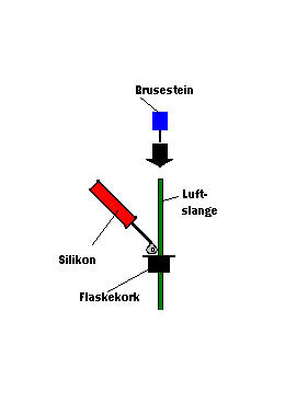 Fyll bruskorken med silikon og trekk ned luftslangen med brusesteinen til den stopper nede i korken.