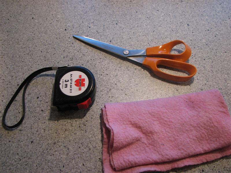 Til at lave baggrunden skal der ikke mange redskaber til, nej kun en saks, målebånd og en fugtig klud. (se billede for at se redskaberne)