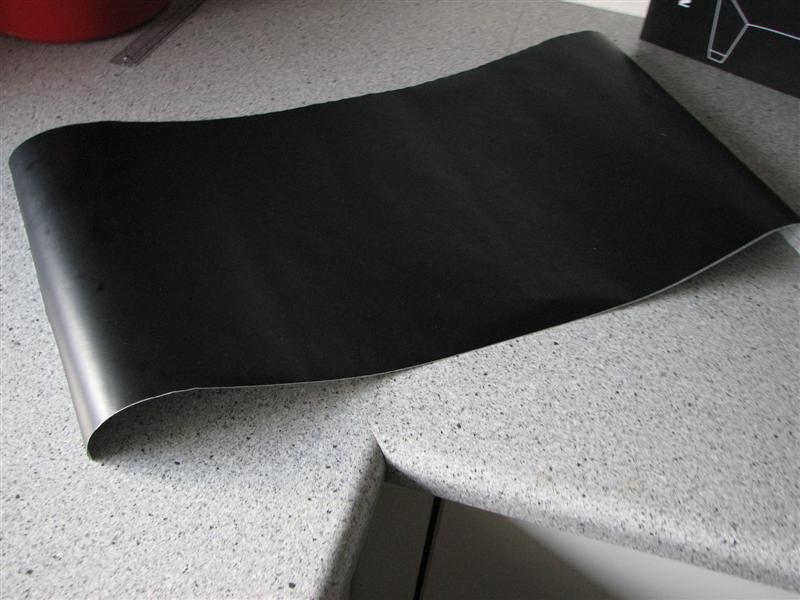 Det jeg gjorde var jeg købte en rulle sort hylde papir i det lokale byggemarked. (se billede for at se etiketten på rullen)