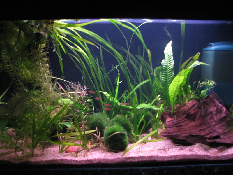 Det var slet ikke så farligt, og nu havde jeg et fint stykke som passede til bagsiden af mit 54 liters akvarie. (se billede)