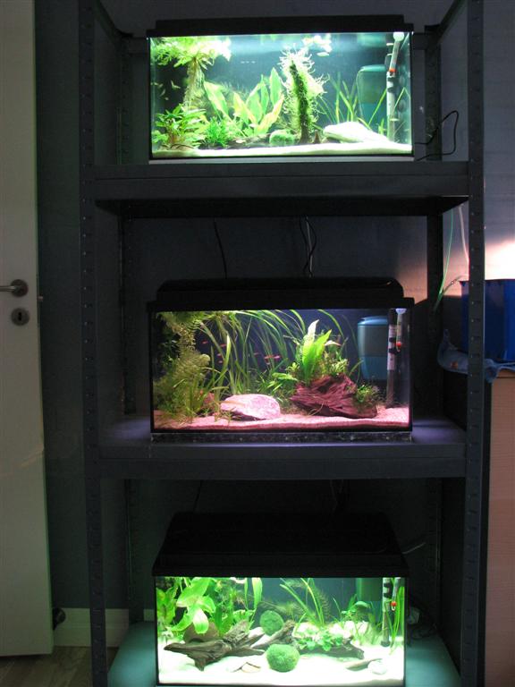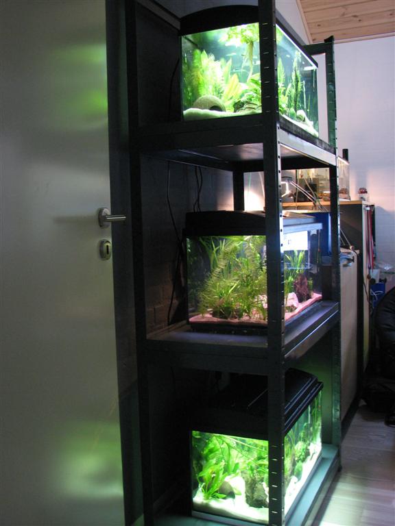 Jeg stod i en situation hvor jeg gerne måtte få en akvariereol, men problemet ved det var bare at reolen skulle stå på mit værelse og den skulle se ordentlig ud. Jeg kiggede på mange reoler, både pæne reoler fra Ikea og lignende, men ingen af dem så ud til at kunne holde de 3 x 54 liters akvarier jeg havde tænkt mig at sætte i reolen.