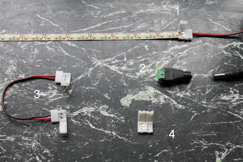 I princippet kan man selv lodde LED-bånd, hvis man har forstand på og tålmodighed til det. For at gøre det nemmere, findes der også fittings, hvor man får et sæt med 3 af hver af flg.: