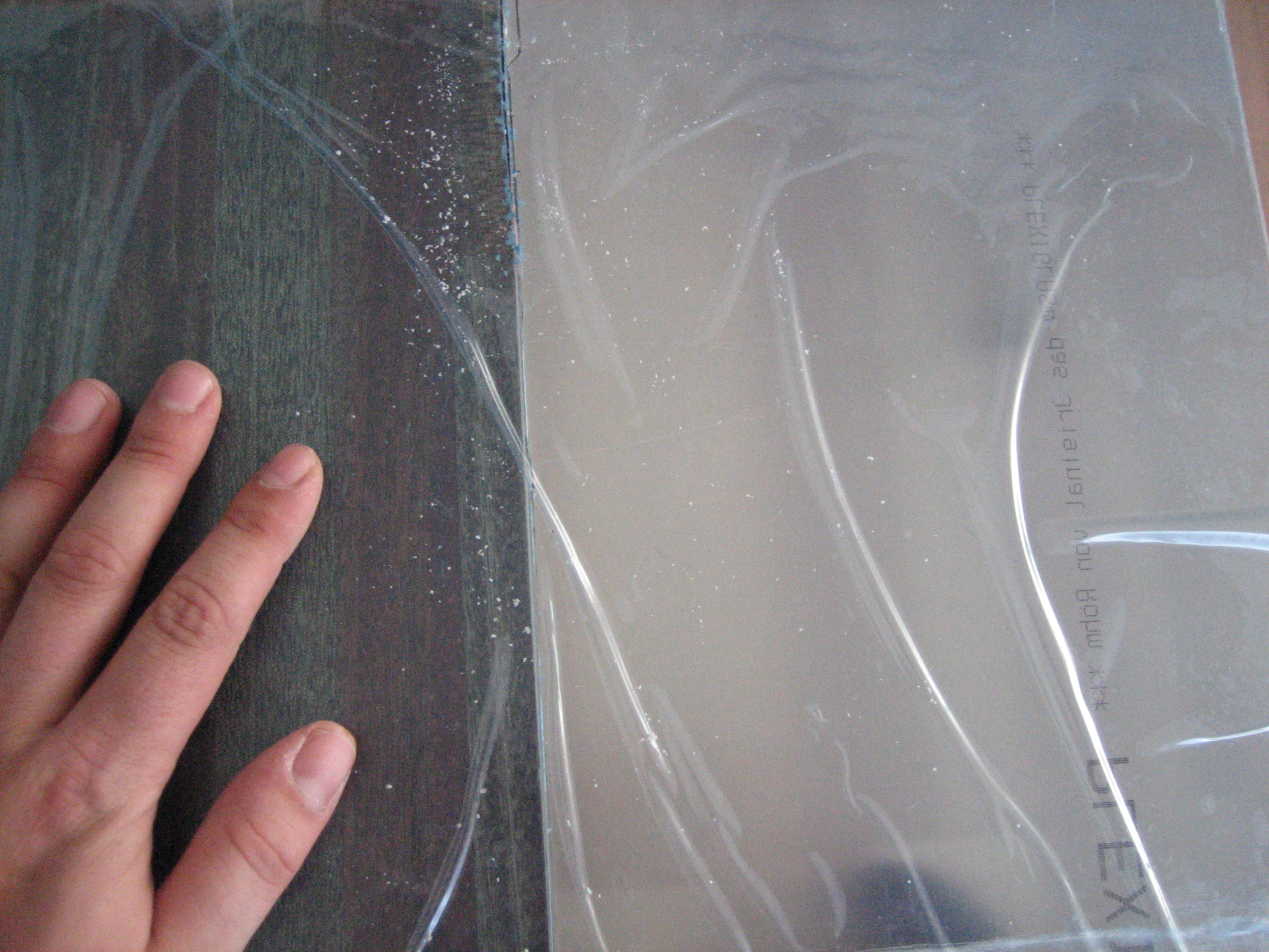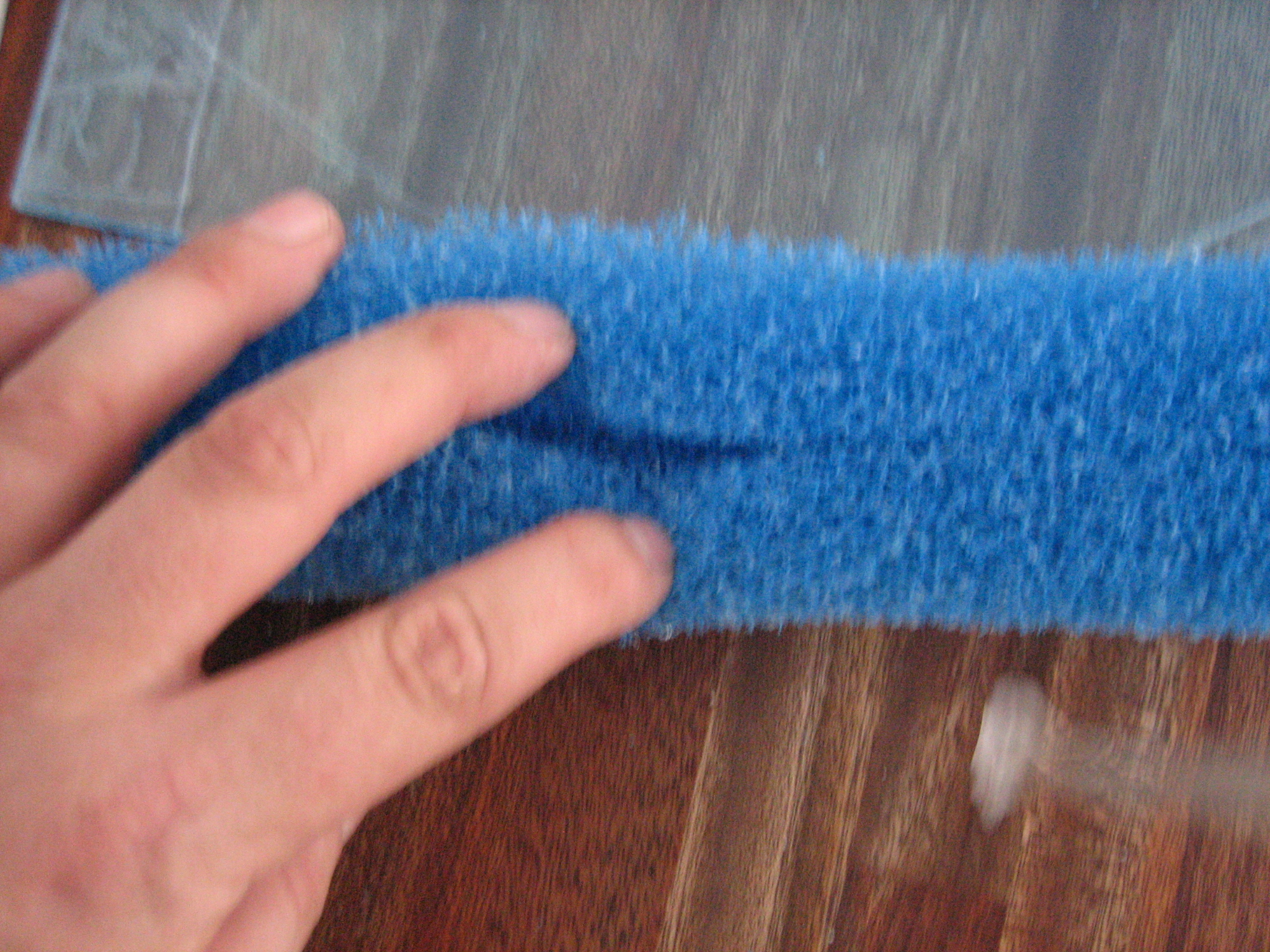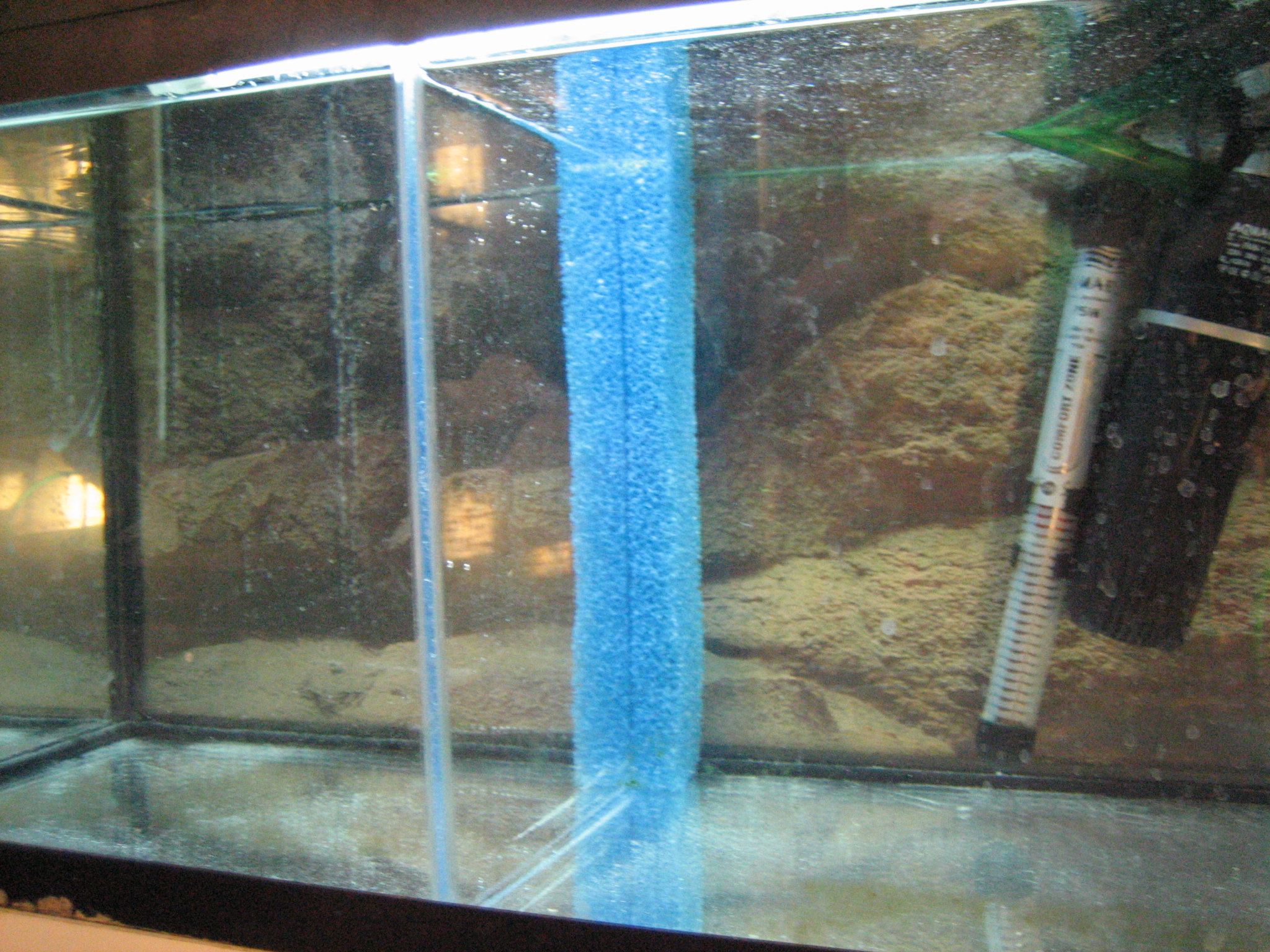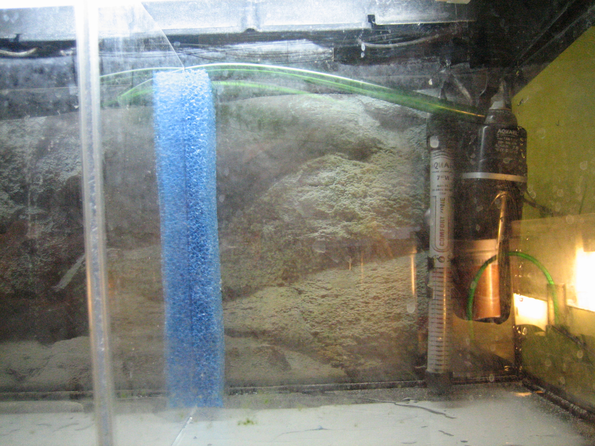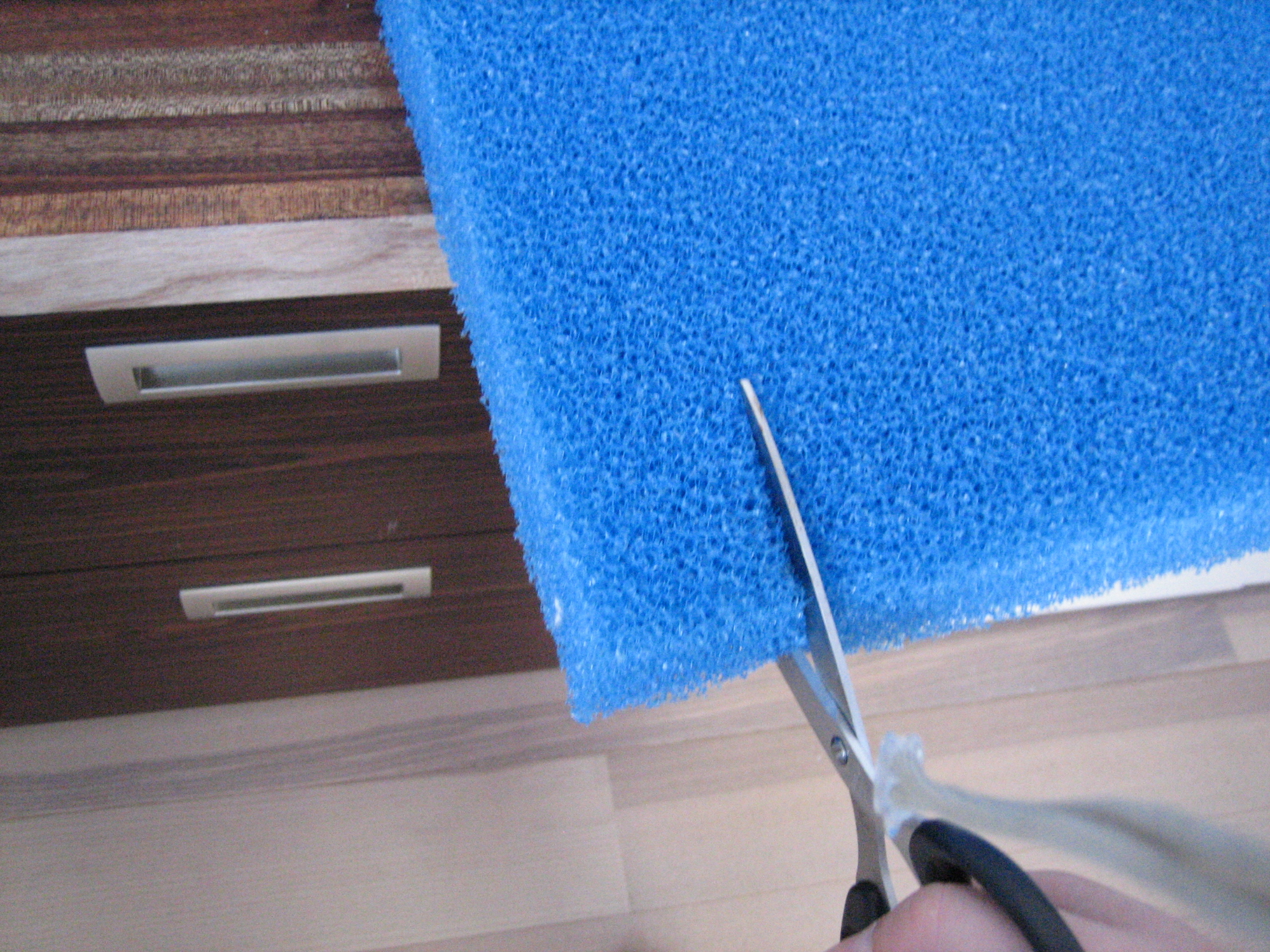 Du starter med at mærke plexiglasset op, så det er en del kortere end akvariet er dybt, hvor meget kortere bedømmer du selv, alt efter hvor grov en filtersvamp du har valgt at benytte. Stykket skal ikke være større, end at svampen kan sidde i spænd uden at bøje.