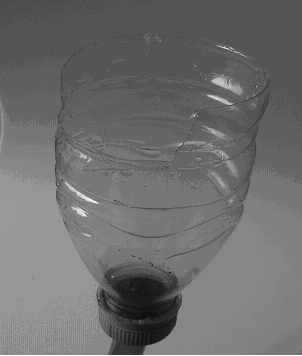 Når det så køre, er det bare at hæve den lidt så den øverste kant på flasken er over vandet.