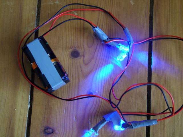 Jeg har lavet et lille forsøg med blå 3mm led pærer.