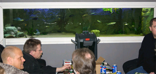Mødet var hos Heinrich eller Taiwanreef som han hedder på siden. Heinrich har et flot 1500 l. akvarium med hjemmelavet baggrund og en masse flotte Malawi cichlider.