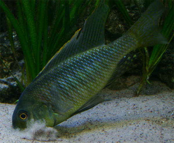 Den kan fint holdes parvis, men bør ikke holdes i akvarier der er mindre end 720 l., da fisken bliver temmelig stor. Men ellers er den meget fredelig. Fint sand er påkrævet til denne cichlide, da den elsker at rode i bundlaget efter føde.