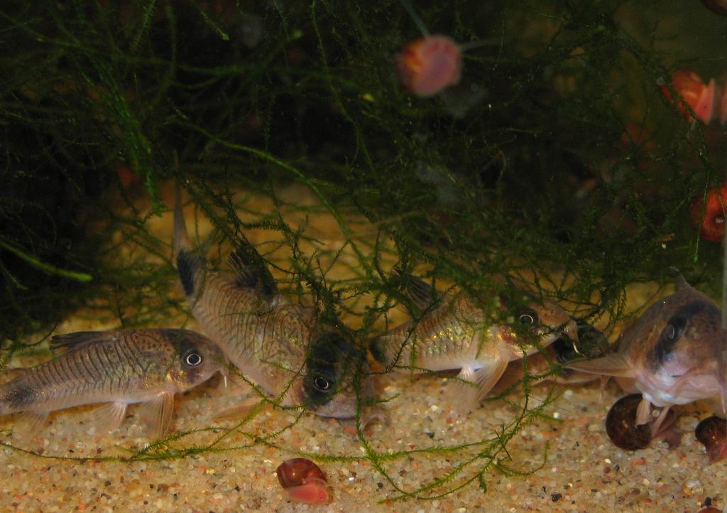 Corydoras panda; en populær Corydoras. Hvis man ser godt efter, så har hunnen til højre faktisk et æg mellem bugfinnerne.