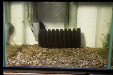 Den type filtrering som bruges i de små 20cm x 20cm x 20cm er et indvendigt luftfilter med en skumpatron. Kassefiltre bruges i de mellemstore akvarier (43cm x 25cm x 25cm) og i de større 90cm x 45cm x 20cm opholds/yngelakvarier er der hjemmelavede bundfiltre med powerheads. Hvis jeg har brug for ekstra filtrering bruger jeg et udvendigt spandfilter.