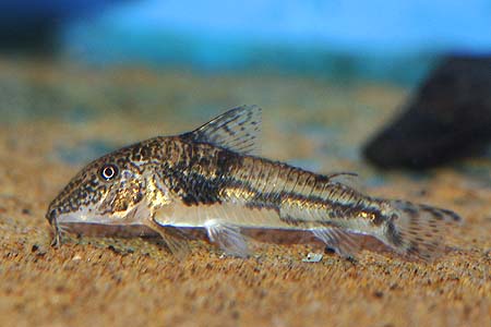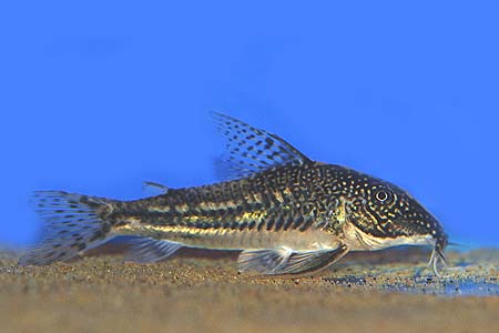 En telefonsamtale gav mig oplysning om ankomsten af Corydoras barbatus til Nordøst England. Jeg tog straks af sted til forretningen for at købe dem. Da jeg kom til butikken var der kun omkring et dusin tilbage. Jeg besluttede at satse og udvælge mig en trio, - jeg husker dem som ret sunde og jeg valgte den største som var en ca. 5 cm stor fisk, som jeg regnede med var en hun da den var ret robust, de øvrige fisk var omkring 2.5 cm store og meget slanke, og to af disse udgjorde så trioen. Der var ikke nogen særlig synlig forskel på bug finnerne, og det var derfor at jeg valgte på baggrund af størrelse og form. Selv i dag kan jeg ikke se nogen forskel på bryst finnerne, men hannernes mønstre varierer en del, - de har en gylden linje langs den underste del af siderne. Jeg har fundet ud af at det kun er bestemte Corydoras som kan kønsbestemmes ved hjælp af bryst finnerne. Da jeg kom hjem blev trioen sat i et 60cm x 25cm x 25cm’s akvarium med nogle sunde Corydoras aeneus (der blev gjort meget ud af at tilvænne fiskene til vandet). Mit vand er pH 6, temperaturen er 21-22 C dh - ?. Jeg har fundet ud af at nye Corydoras falder bedre til hvis jeg sætter dem i et etableret Corydoras akvarium.