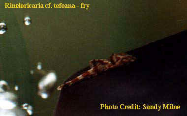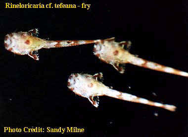 Første gang jeg blev bekendt med denne art var sidste år (1998) hvor en ven ikke kunne identificere dem. Han var så venlig at købe 4 individer til mig. Det var tilbage i oktober samme år de blev købt i en butik i Nordskotland. Jeg kunne ikke heller ikke identificere dem, men jeg havde en god fornemmelse af at det var Rineloricaria sp. Det var først senere hvor jeg fik kigget i Practical Fishkeeping at jeg fandt dem. De findes også som L010 i Loricariidae Aqualog-all L-Numbers, og så vidt jeg ved er det stadigvæk en ikke helt beskrevet art.