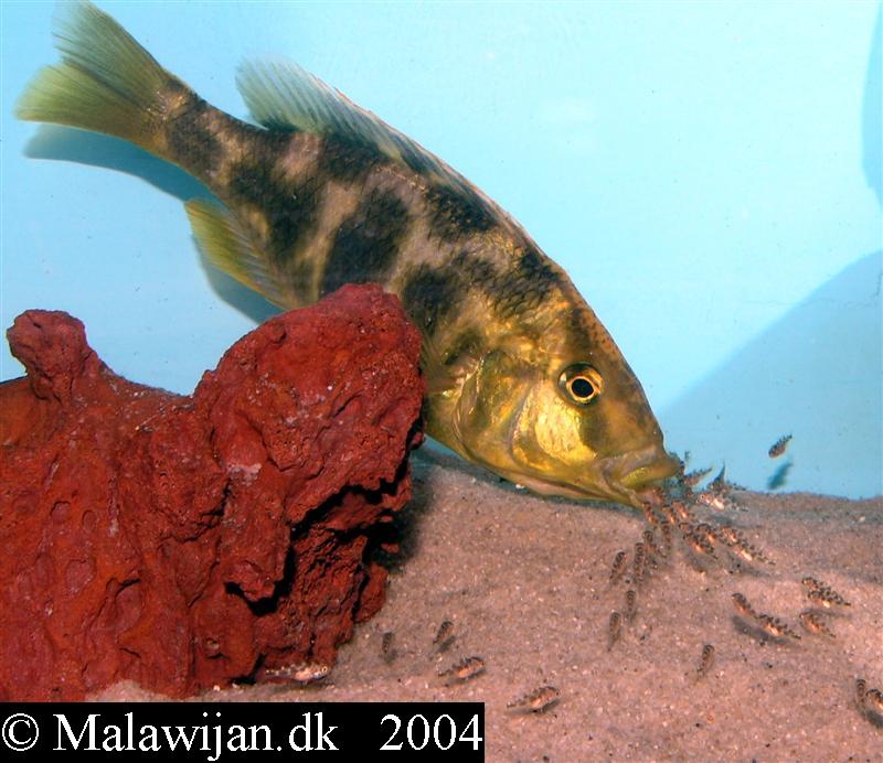 Ungerne fodrer du med Afkapslet (afskallet/frysetørret) artemia, kært barn mange navne, men det er det samme, det er meget proteinrigt og skal bare smuldres ud i akvariet, ikke for meget, hellere mange gange om dagen, det laver et frygteligt svineri hvis det lægger sig på bunden.