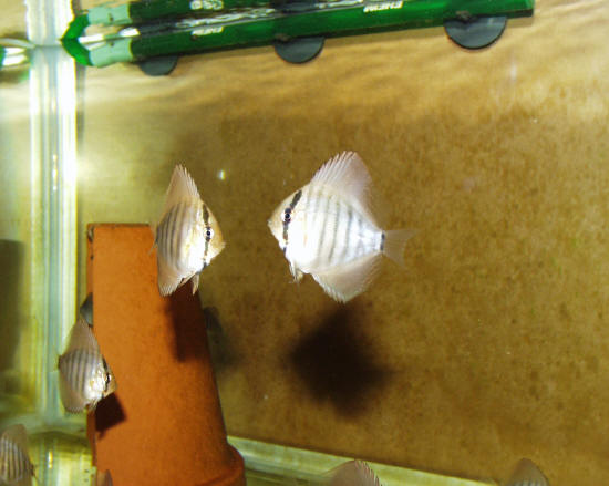 En anden ting du skal være opmærksom på når du holder discus er vandværdierne. Discus kan normalt sagtens gå i vand med en pH op til op 8,5, men det går ikke når du skal yngle. Du skal helst ned på et sted mellem 6,0-6,5 og den værdi kan du evt. holde ved at tilsætte rigelige mængder af tørvemos eller granulat direkte i din spandpumpe (stop det i en nylonstrømpe og bind en knude). Tørvemossen er samtidig med til at sikre tilstedeværelsen af mange sporstoffer, der er gavnlige for såvel forældre som unger.