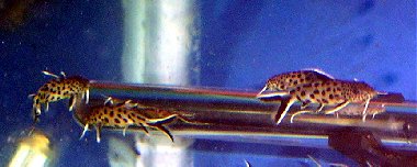 På 10. dag efter parringen begyndte ynglen at kunne spise nyklækkede artemia. Få dage senere blev deres kroppe brunlige, men stadigvæk uden pletter. En ret hårdfør fisk eftersom jeg kun mistede 30 unger, og af disse blev størstedelen slået ihjel af et filterproblem. Læs mit lille Tip senere i artiklen.