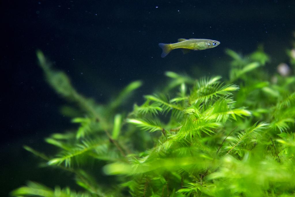 Iriatherina werneri æg hæftet på Taxiphyllum sp. 'Peacock'.