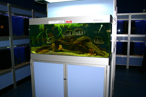 Udover os 3 var der også nogle repræsentanter fra nogle forskellige lande i Sydeuropa, som langt fra vidste lige så meget om akvarier som vi gjorde. Første lektion var hvordan at man sætter et akvarium op fra bunden af. Imens denne lektion kørte, besluttede jeg mig nu for at tage nogle billeder af bla. Flowerhorn cichlider som var nogle hidsige bæster, og af nogle forskellige flotte discus fisk.