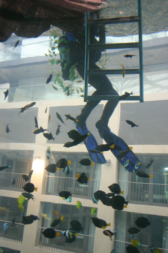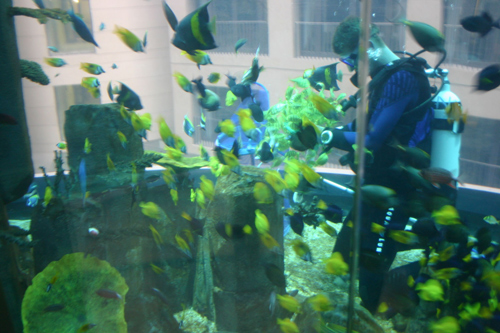 Efter en snak med dyrkerne og et par ture op og ned i den elevator som går inde i akvariet, fik jeg taget nogle billeder og fik lidt information om selve akvariet.