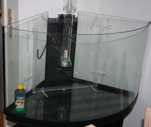 På de første 2 billeder ser i akvariet hvor jeg er ved at lime overløb i