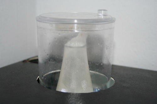 Her ses skummerkoppen med lidt brunt skum, så det tyder på at den også fungerer.