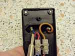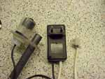 (billede; den mørke blå ledning og den røde ledning) I den anden ende af samlemuffen skrues nu en ledning til selve pumpen i.