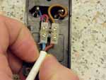 I netstikboksen lodder du et stk. ledning på ca. 3 cm på et af benene, og monterer den anden ende i en samlemuffe. (billede; den brune ledning).