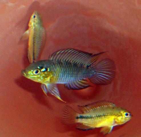 A. trifasciata er også lidt i samme retning, men hører til den gruppe, der populært kan kaldes "indianerne" på grund af forlængelserne i de forreste rygfinnestråler og på bugfinnerne, selv om den trivedes fint hos mig. Der kom enkelte, spredte æglægninger, men aldrig nogen levedygtige unger.