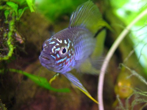 Akvariehandleren havde fået en ny sending akvariefisk hjem. Ejeren havde fortalt, at han ville bestille nogle dværgcichlider hjem, men ville ikke fortælle hvilke slags det var. Så min forventning var meget stor, for at få se hvad det var for cichlider. Da jeg så så disse cichlider for første gang, havde jeg svært ved at tro på det jeg så. Apistogramma spec. Opal! Dette lød som en eller anden hjemmelavet fisk, men efter at have rådført mig med forskellige cichlidebøger og ledt på internettet, fandt jeg ud af, at disse cichlider var gode nok. Jeg købte derefter to par. Ikke fordi de var så farverige, de var mere mørke og lidt kedelige at se på, men fordi dette var en ny slags dværgcichlide.
