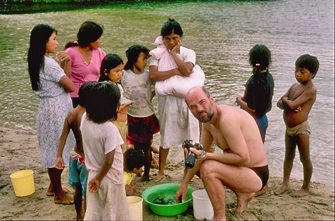 På hotellet stod der et akvarium med bl.a. guppy og sort tetra, det viste sig, at hotelmor også er interesseret i akvarietfisk. Alf Stalsberg, der taler spansk, kom i snak med damen og hun fortalte om en bæk, hvor der var masser af guppy, og at der i Rio Tena er masser af maller og cichlider. Hun var meget venlig, så hun viste vej ned til Rio Tena, der lå ca. 500 meter fra hotellet. Her skulle vi gå ad en sti, til vi kom til en hængebro og så skulle vi gå over til en lille ø, som indianerne kaldte for kærlighedsøen, og det var vi slet ikke i tvivl om, da vi kom derover, for der var kvinder med børn i alle aldre plus de havde en i maven. Vi så lidt på lokaliteterne og besluttede os for et vende tilbage hertil senere. Hotelmor aftaler med indianerne, at de skal fange nogle fisk til os.