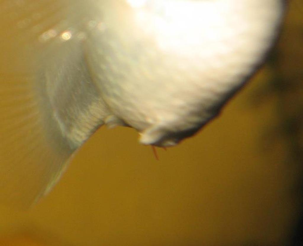 En orm der tilhører gruppen af trådorme (Camallanus (gullighvid), Philometra(rød)). Den har med sin regnormelignende forende boret sig ind i endetarmen. Bagenden rager undertiden ud af gatåbningen, formodentlig for at lade ungerne komme fri ude i vandet - ormen er levendefødende.