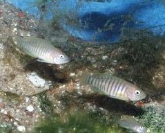 Multifasiatusen er en af de mindste Cichlider i Tanganyika-søen, den lever bla. i Cape Chaitika Zambia. Den bliver for hannens vedkommende ca. 4cm mens hunnen sjældent kun bliver ca. 3 cm lang. Navnet multifasiatus har den efter de 12 - 14 tværstriber den har. En for øvrigt lille smuk fisk, med lysende blå øjne, den er både i størrelse og adfærd, meget velegnet til mindre akvarier. Den er sneglehusleger, det vil sige at den yngler i tomme sneglehuse. Til opdræt er vinbergsneglen's hus at foretrække, det er en fisk der lever i kolonier. Med hensyn til indretningen af akvariet er det altid en fordel, at placere de tomme sneglehuse helt op af forruden, da den elsker at grave omkring sit hjem, og hurtigt kan smide alt sandet op af forruden. Fint sand er at foretrække. Den kan være meget aggressiv, over for andre fisk der kunne finde på at komme for tæt på kolonien. Derfor vil jeg anbefale at denne fisk holdes alene i små akvarier, jeg startede med 5 stk. i et 30L, det varede ikke længe før jeg havde ca. 35 - 40 stk. Af foder kan jeg kun anbefale levende foder og frost foder, den er ikke særlig glad for tørfoder.